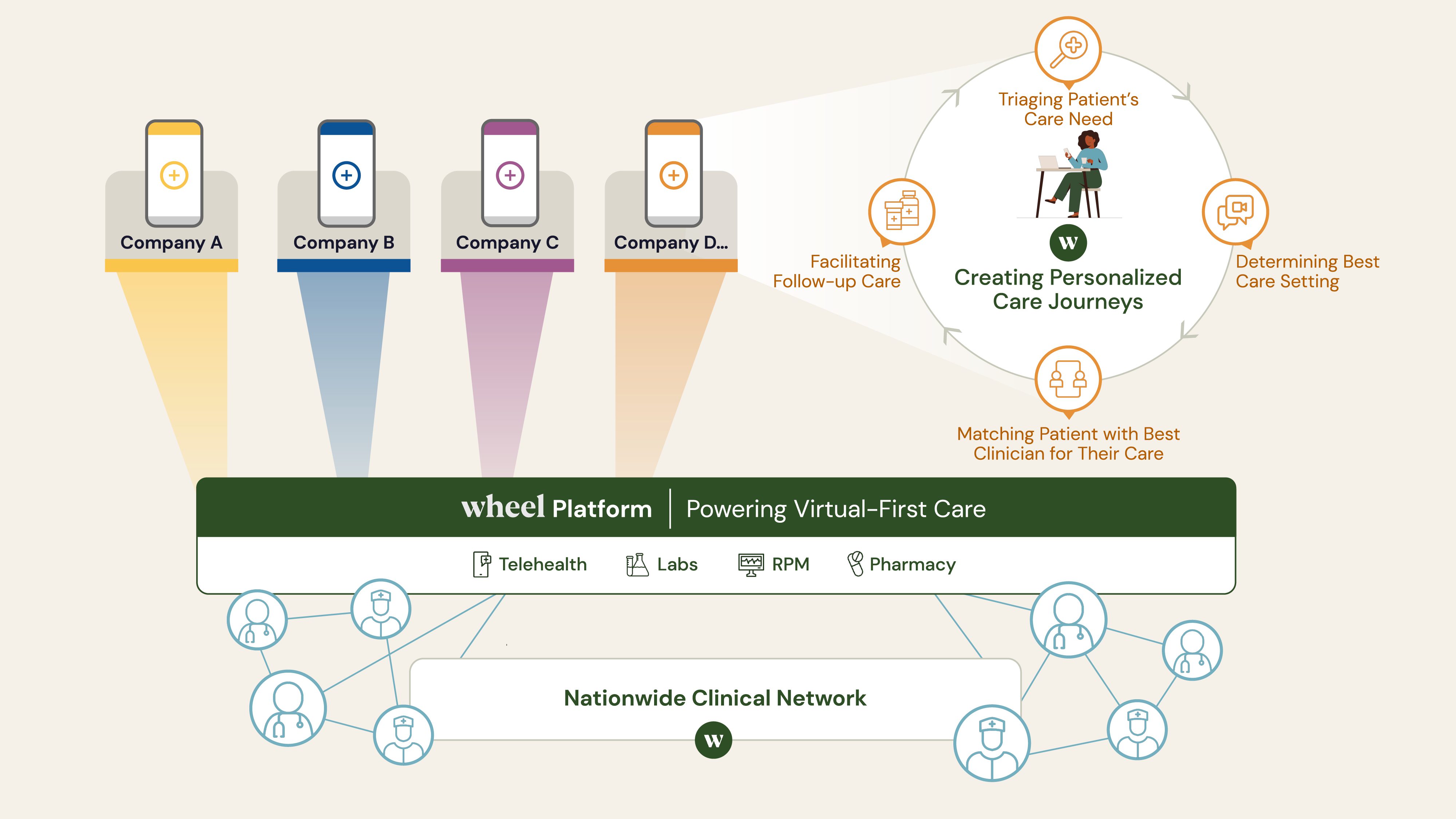 That’s why we’re investing in the underlying infrastructure that puts patients’ needs front and center — or what insiders call an “omnichannel” approach. When companies build on Wheel’s platform, our technology triages the patient’s care needs, determines the best care setting, matches the patient with the best clinician for them, and then facilitates follow-up care.
