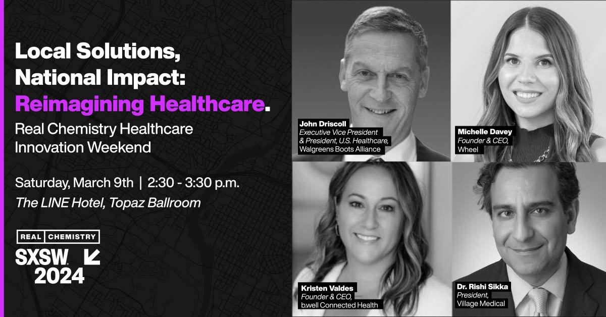 Are you heading to Austin for SXSW? Don’t miss “Local Solutions, National Impact: Reimagining Healthcare,” a panel featuring our CEO Michelle Davey, John Driscoll from Walgreens Boots Alliance, Kristen Valdes from b.well Connected Health, and Dr. Rishi Sikka, M.D. from VillageMD.