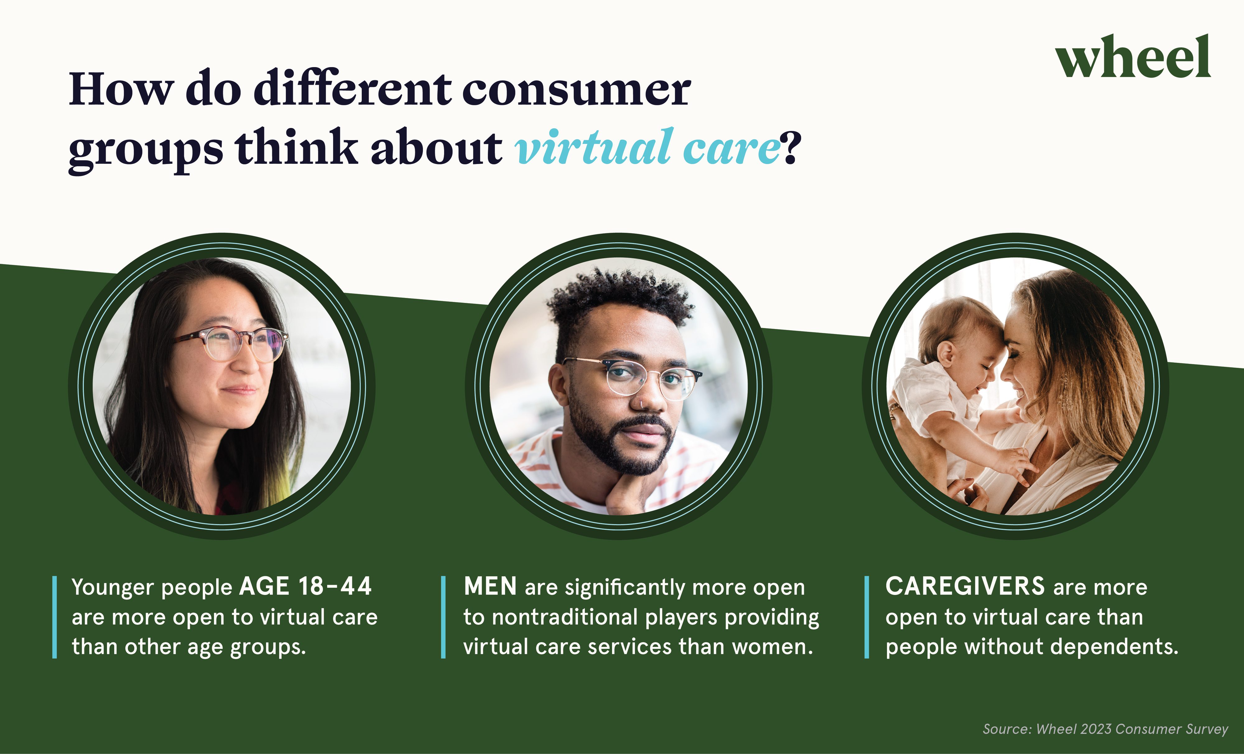 - The majority of consumers are open to virtual care from non-traditional providers like health insurers, retail drug store chains, life science companies, and large retailers.